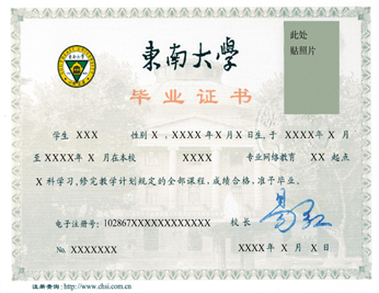 东南大学网络教育证书样本