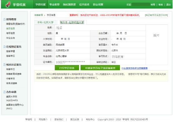 说明:提供国家承认的当前在读以及2002年以来取得学历的各类高等教育学籍数据(不含自考)。
