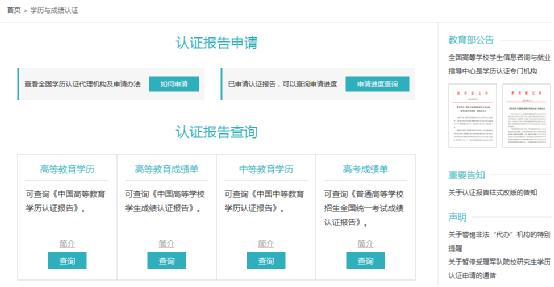 也可以在全国学历认证代理机构申请“学历与成绩认证”,栏目如下图: