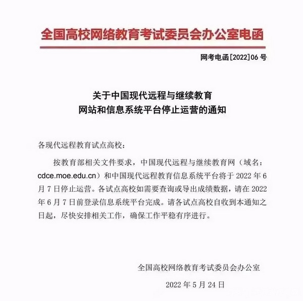 2022年5月24日,全国高校网络教育考试委员会办公室发布通知: